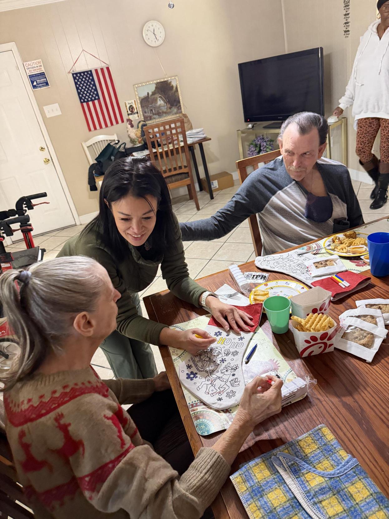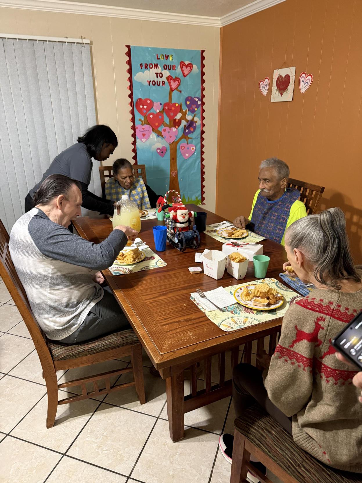 The residents of Total Patient Care welcomed us into their home with open hearts. The holiday celebration included Christmas crafts, shared conversations, and a warm meal enjoyed together around the table. You could see it in the residents’ expressions. This was not just an activity. It was connection. It was dignity. It was joy.