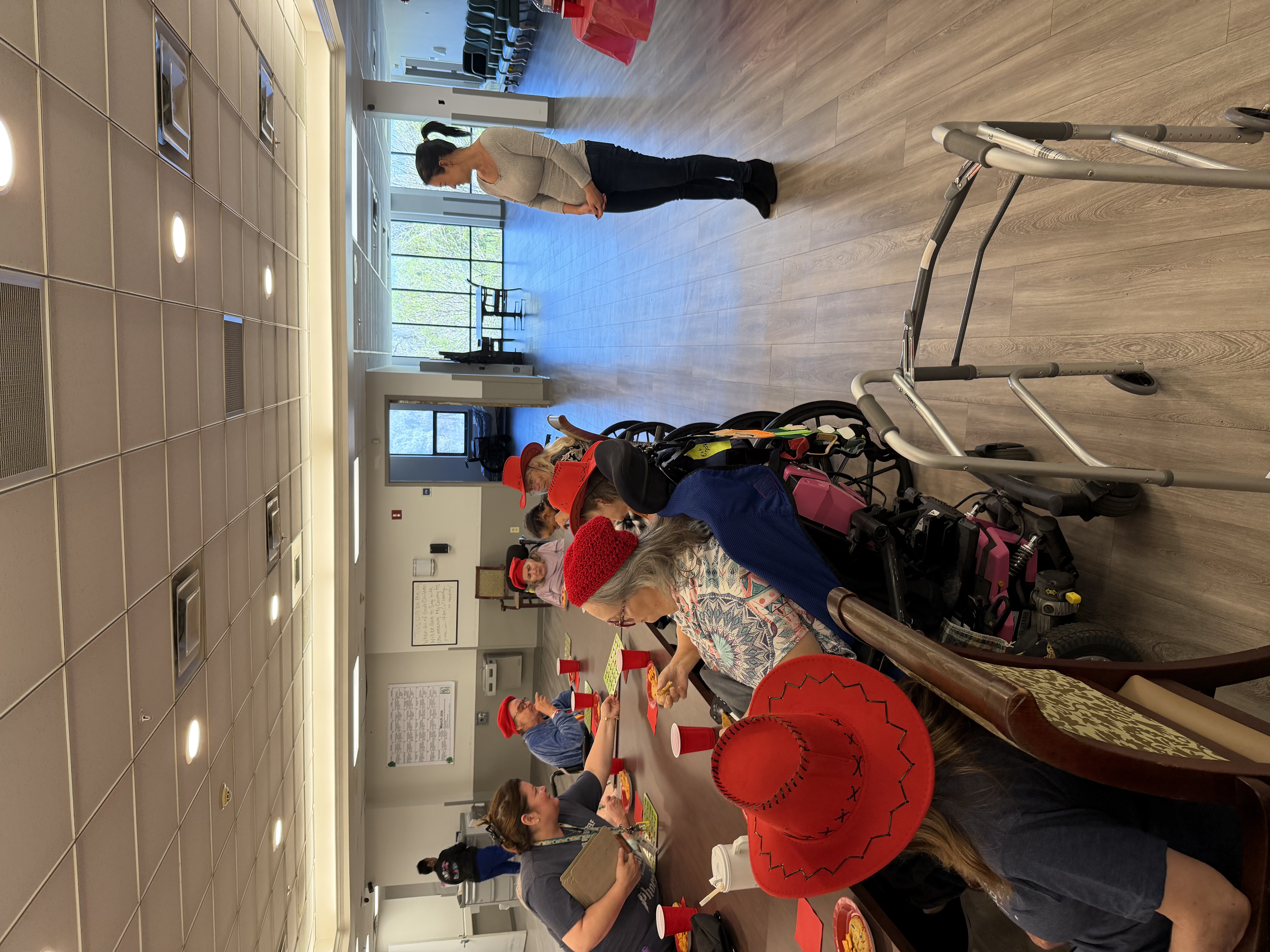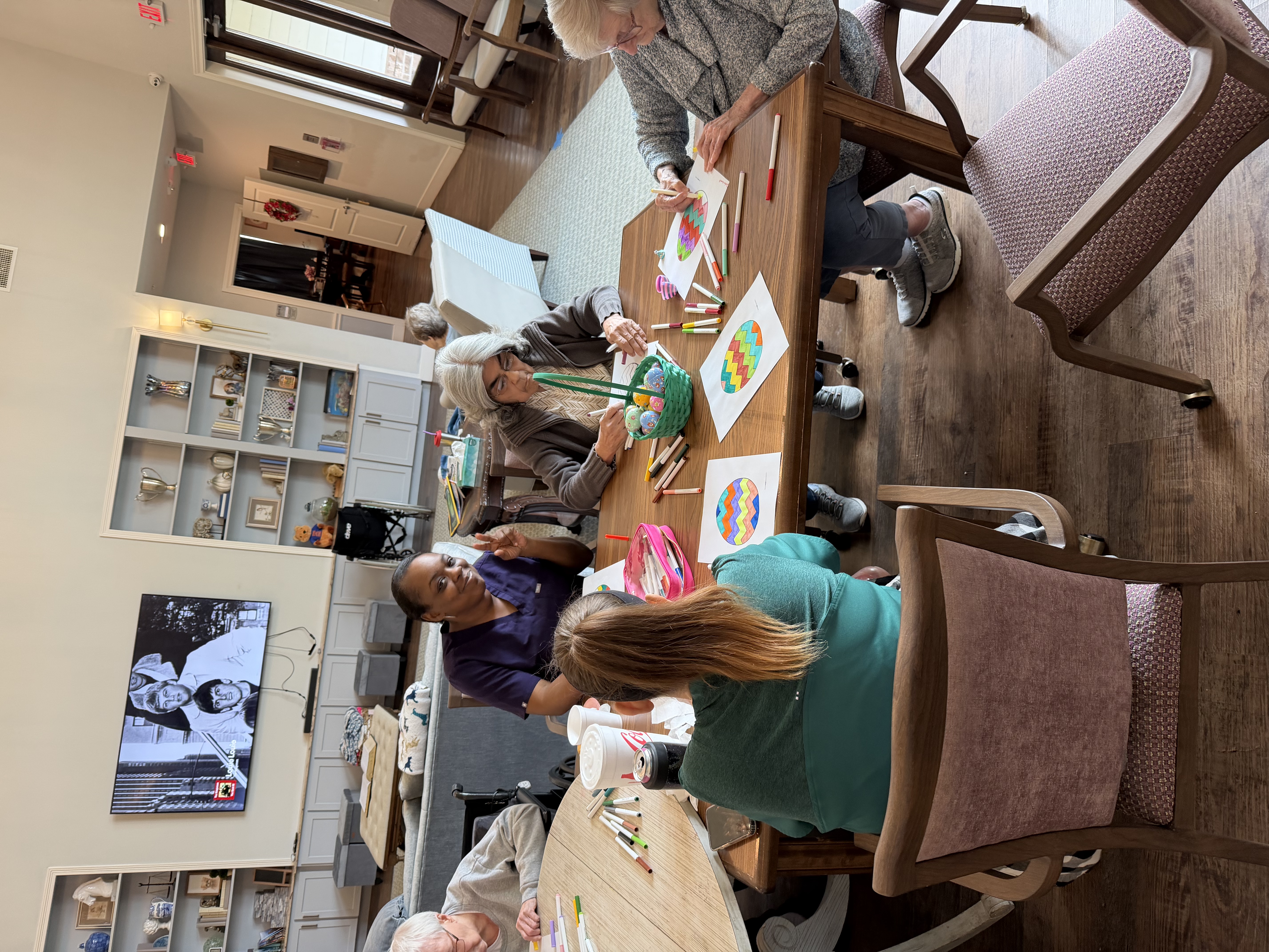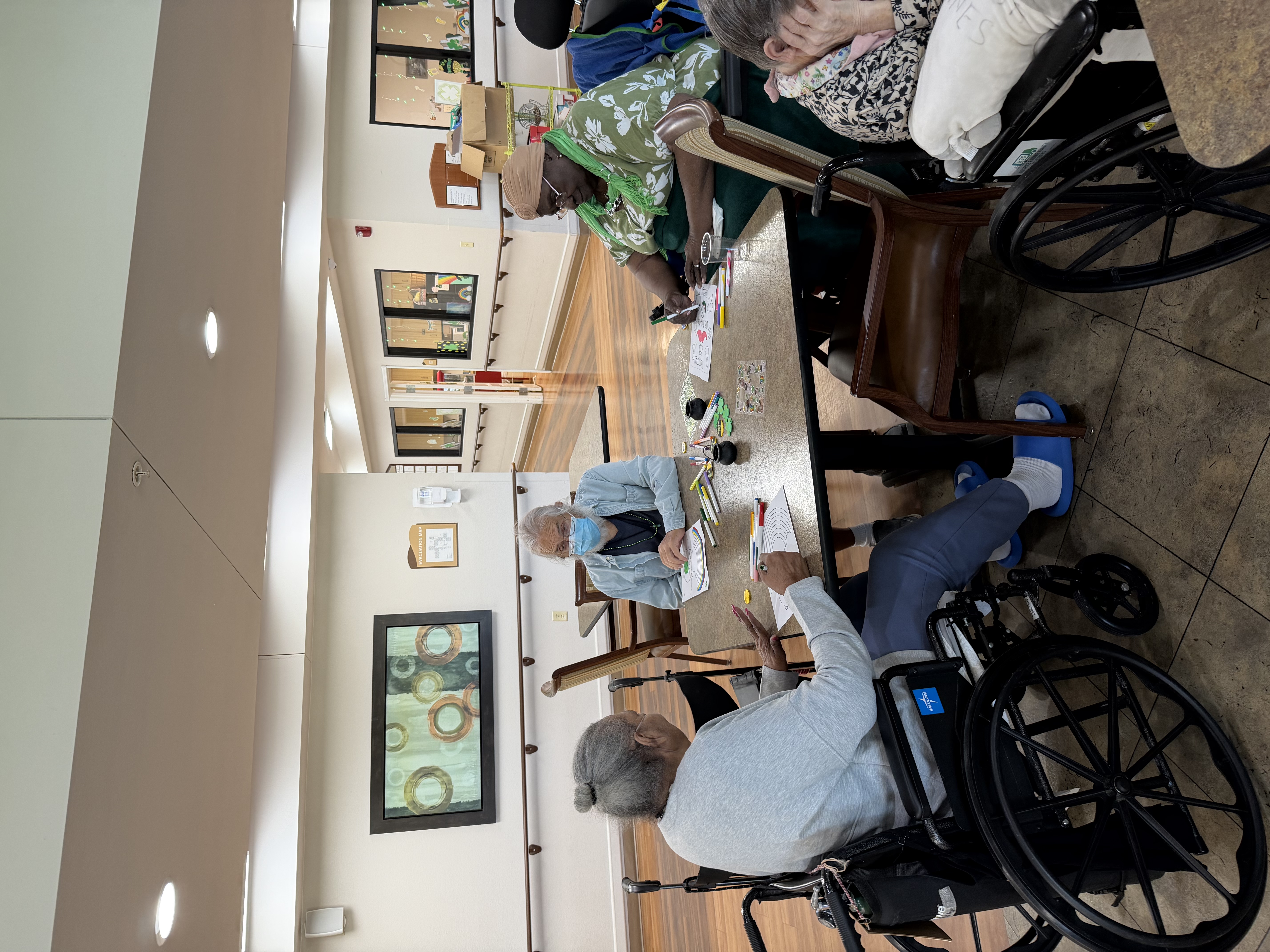Tables covered in craft supplies. Residents gathered, some quiet, some already chatting. As the activity picked up, so did the energy in the room.
