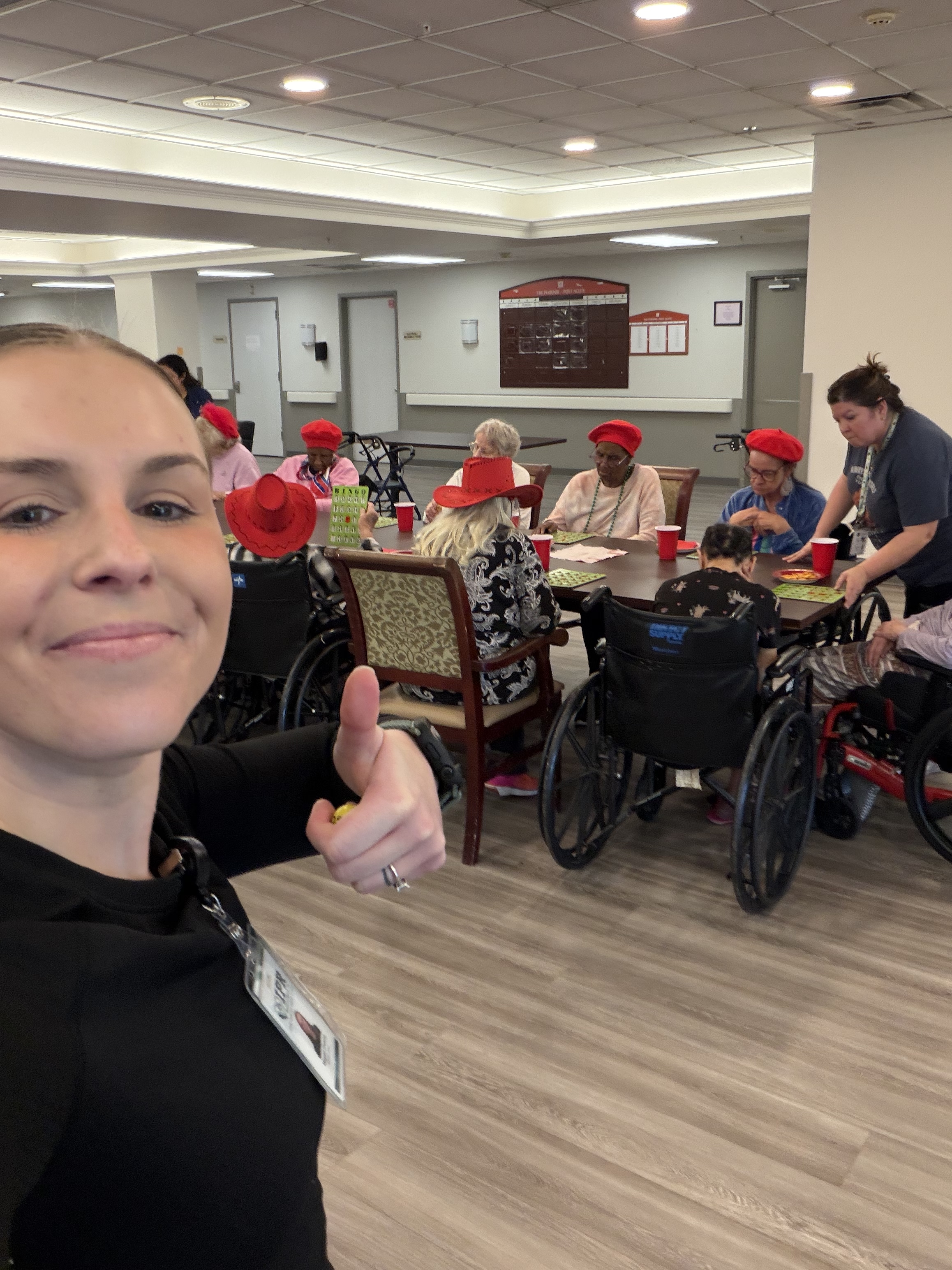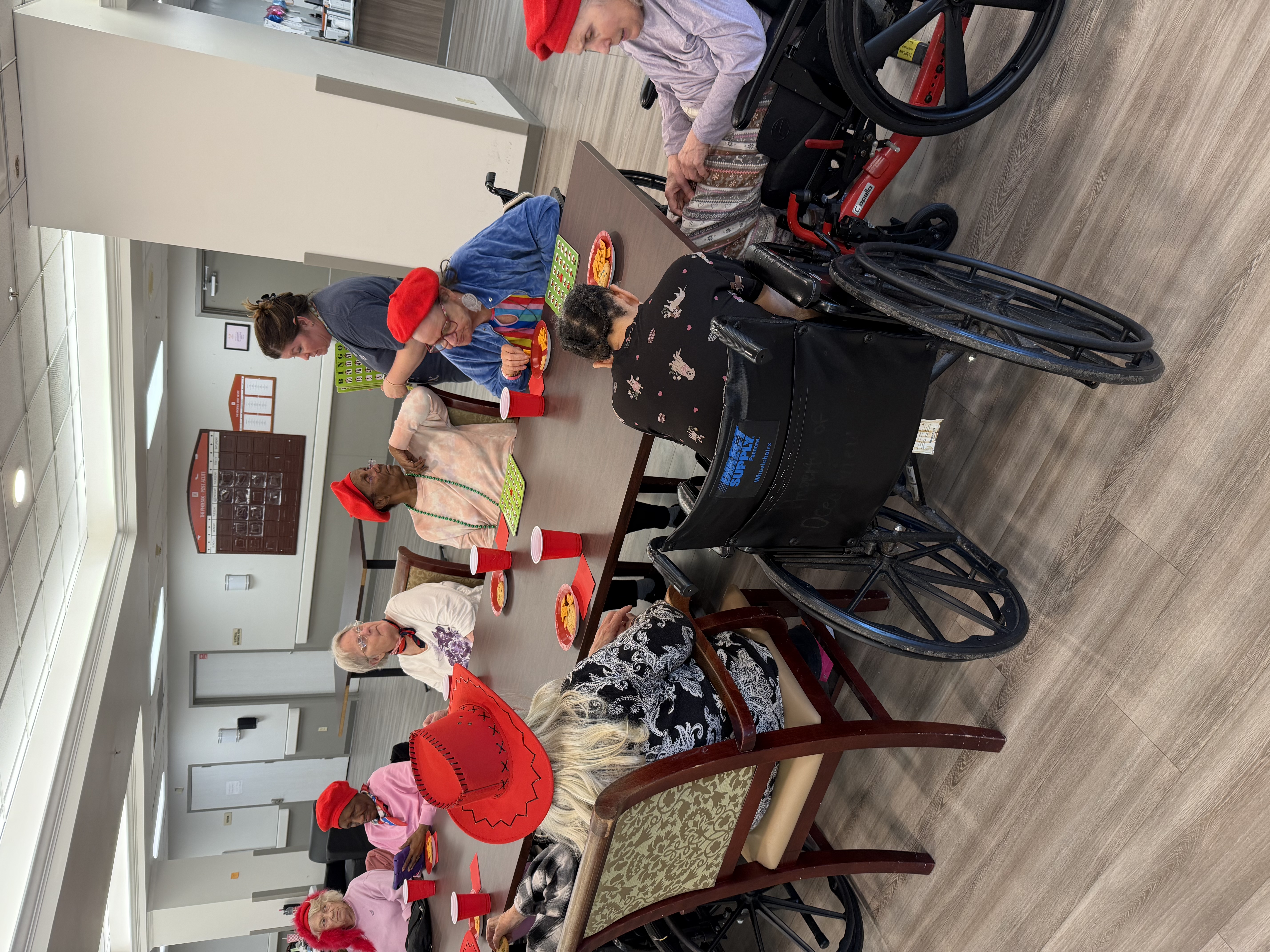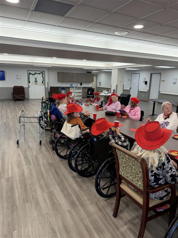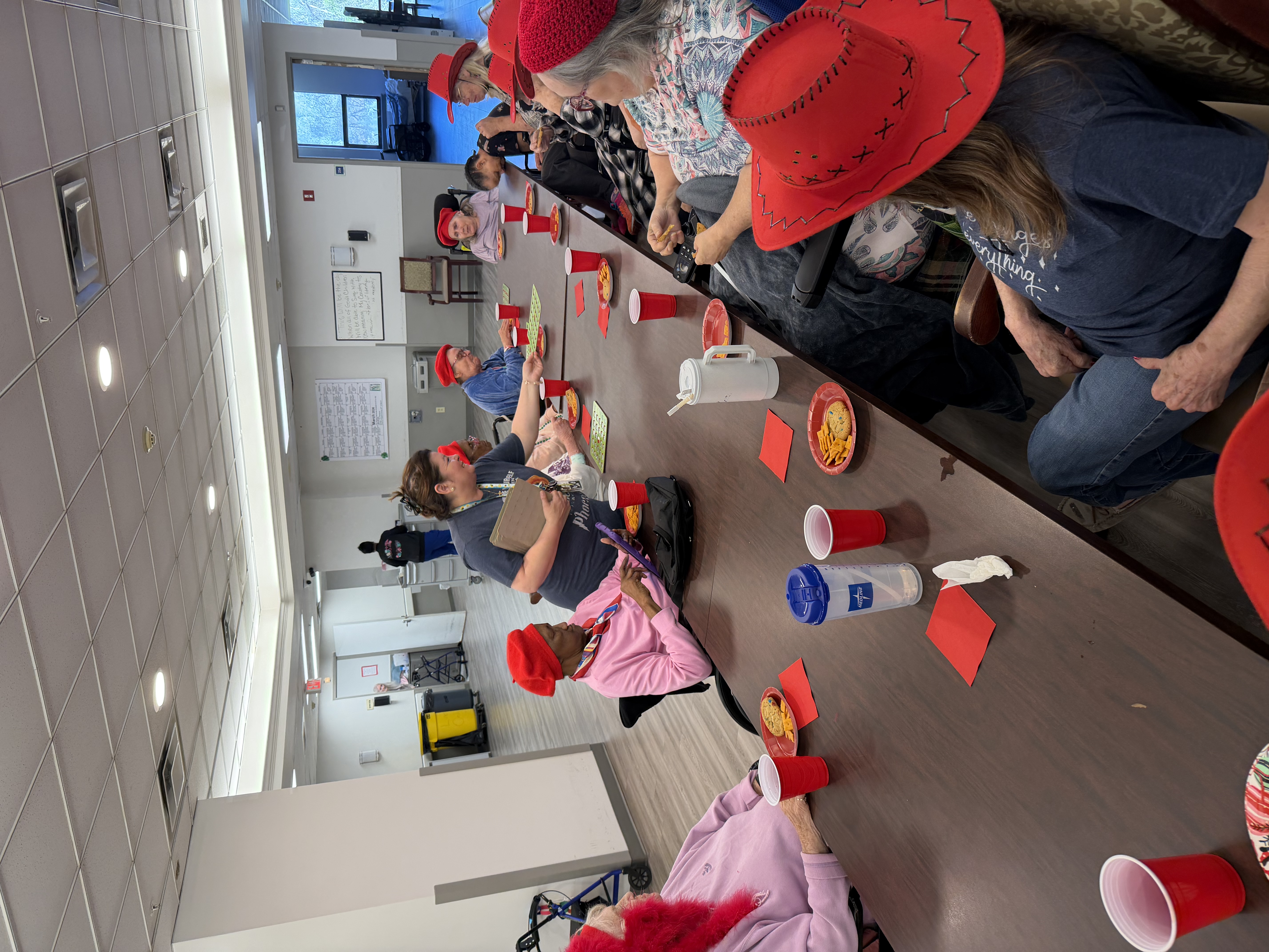 Megan Owens and Sara Niday hosted a ladies “Red Hat Day” at The Phoenix Post-Acute in Texas City. They had snacks and played bingo, and the room didn’t stay quiet for long.