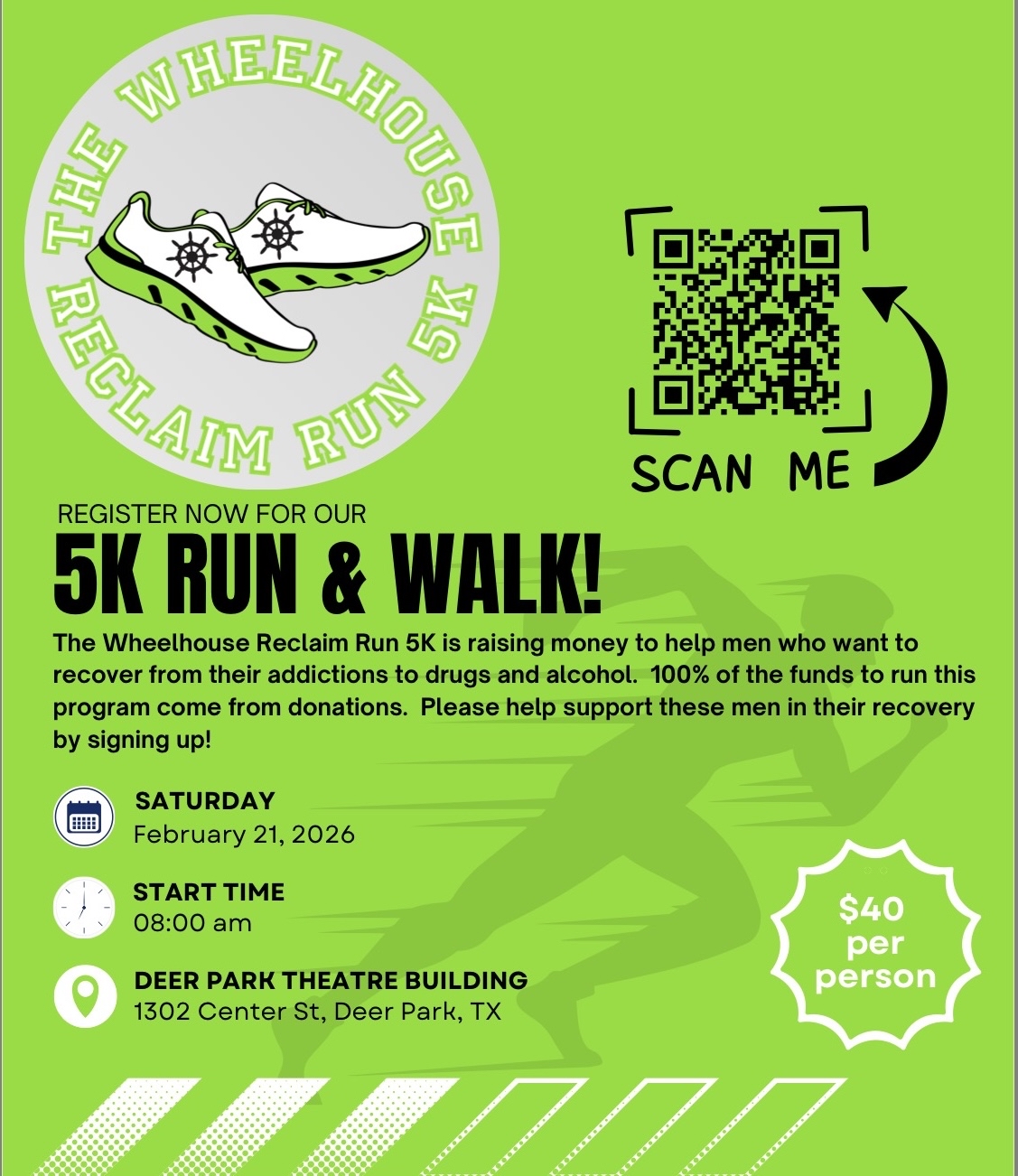 The Wheelhouse is a nonprofit recovery community dedicated to helping men break free from drug and alcohol addiction, rebuild their lives, and return to society as responsible and hopeful individuals. Because addiction impacts entire families, events like this one carry weight far beyond the starting line.